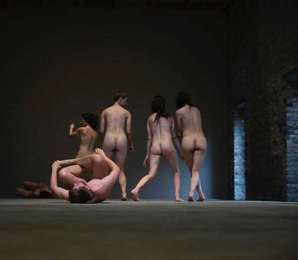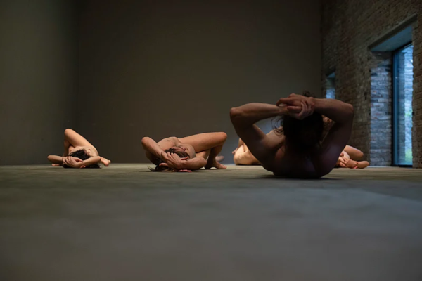However, I was not on an early hike, nor was I in a museum looking at William Turner’s watercolours or Claude Monet’s landscape impressions. No, I was in the Wiesenburg, in Wedding, the not-easy-to -ind, partly overgrown studio of Isabelle Schad, the – in my opinion – most important choreographer in Germany. I was looking for her Berlin research laboratory to see the latest group work ‘Nudity and Landscape’ from the series ‘Studies on Infinity #2’. The fact that the studies on infinity have to be numbered made me smile in advance. And what nudity could have to do with landscape is the question we asked ourselves in front of the empty white dance floor of her studio stage.